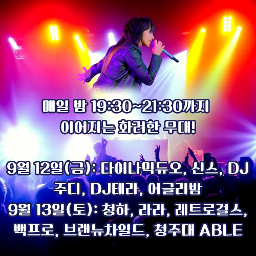 • 9월 13일(토): 청하, 라라, 레트로걸스, 백프로, 브랜뉴차일드, 청주대 ABLE
