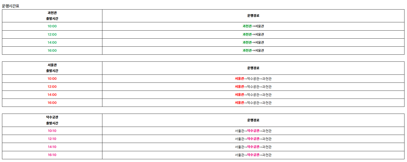 • 운행요일: 화, 수, 목, 금