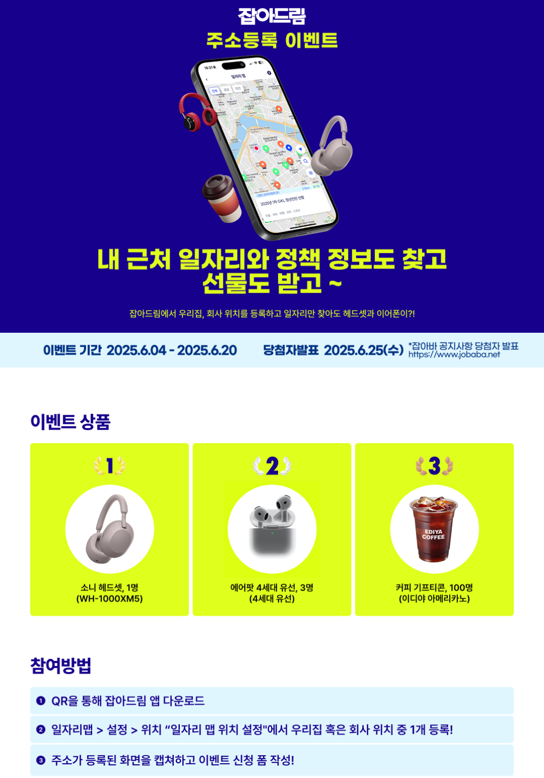 - 당첨자 발표: 2025.06.25(수) (잡아바 공지사항)