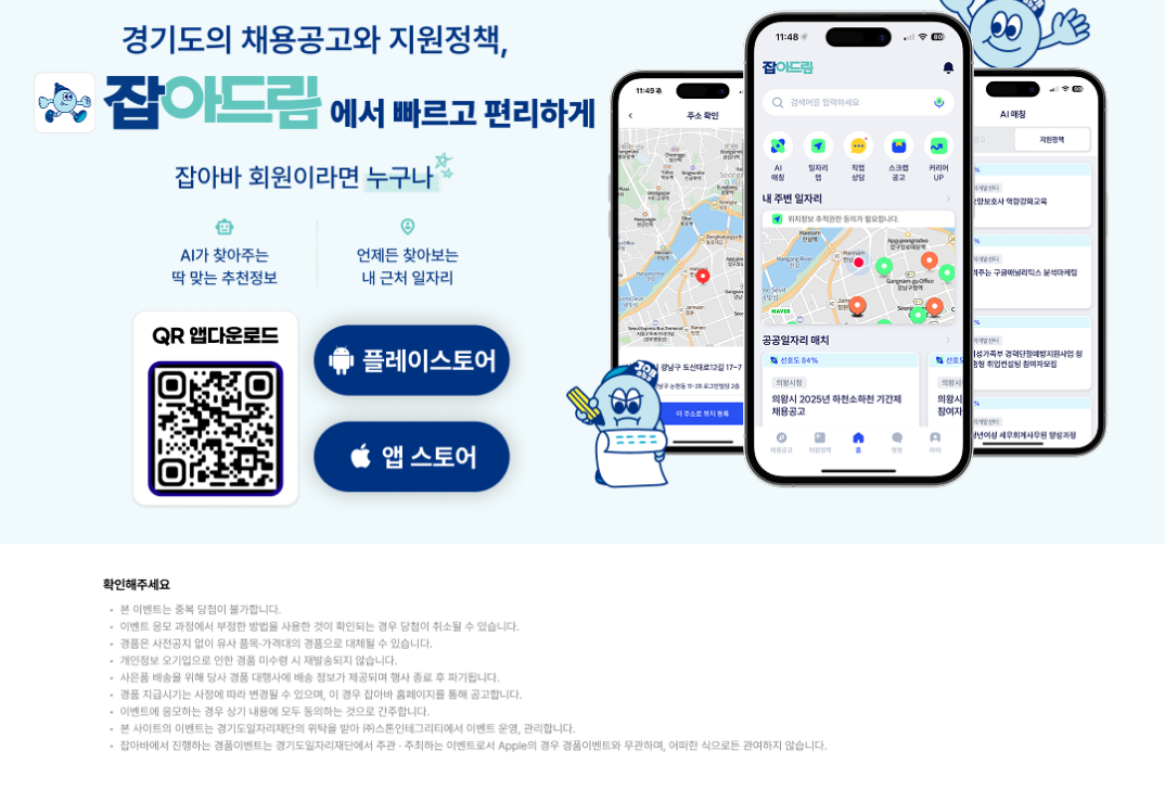 #잡아드림 #경기도일자리 #주소등록이벤트 #잡아바이벤트 #공공일자리추천 #소니헤드셋이벤트 #에어팟이벤트